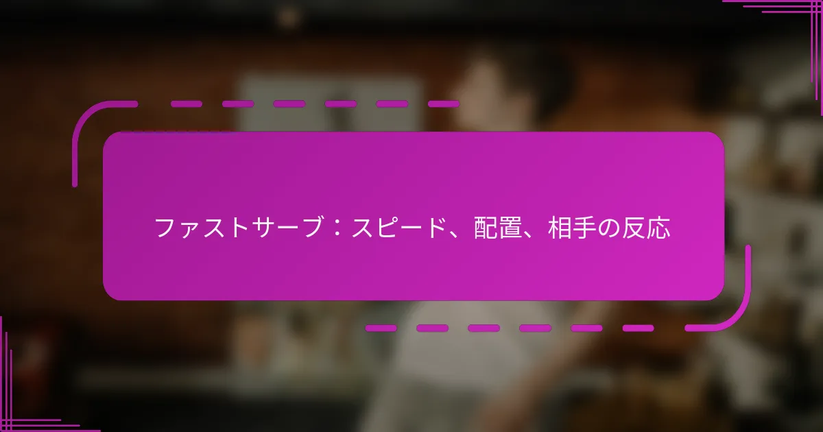 速いサーブは、テニスやバレーボールのようなスポーツにおける強力で迅速なボールの配達であり、相手に対して優位を得るために重要です。速度と正確な配置を組み合わせることで、相手の反応を妨げ、試合の結果に大きな影響を与えます。